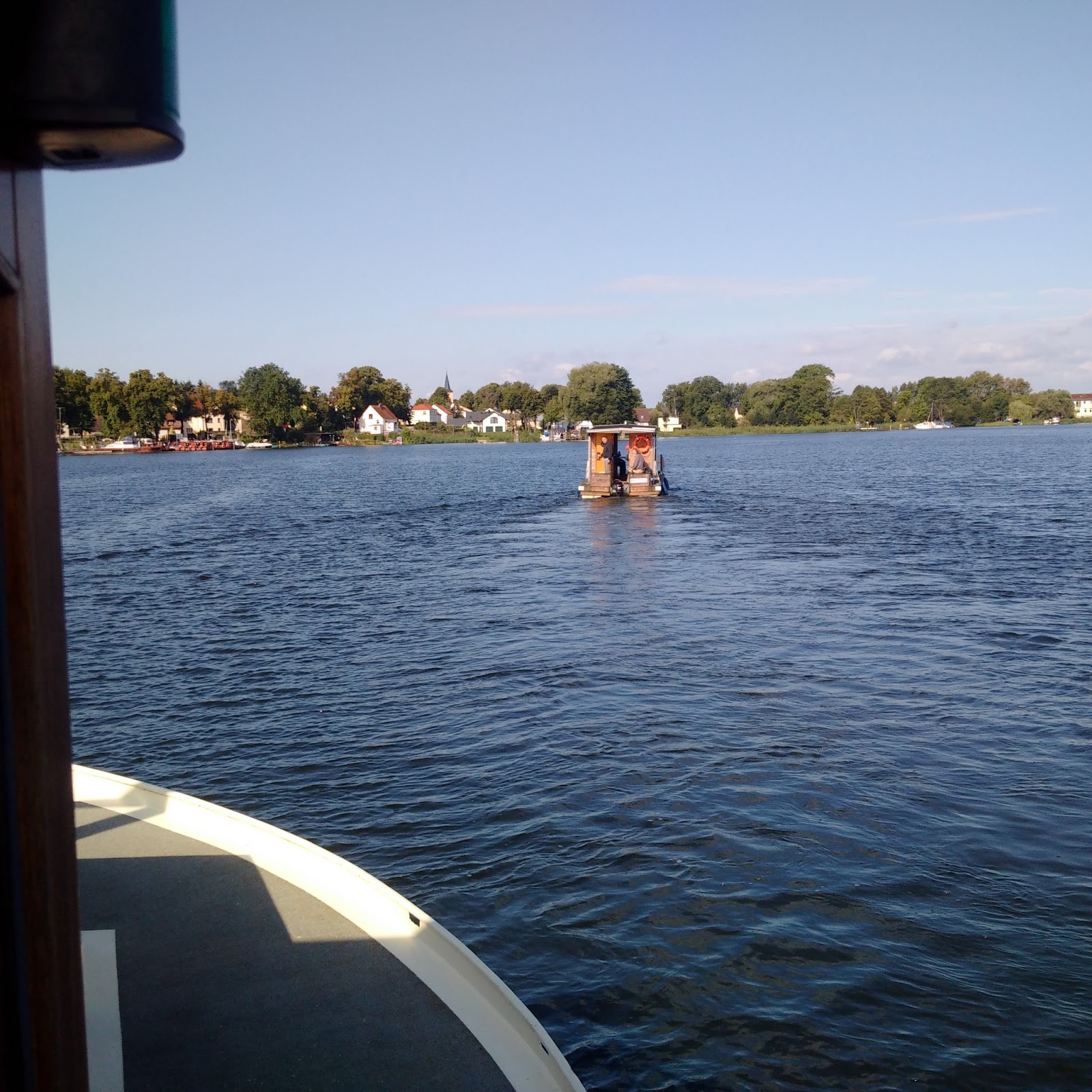 Heute ging es mit einem schönen und sonnigen Morgen los. Valeriu und Oleg brachten uns zurück über den grossen Schwielowsee, dann vorbei an Werder und zurück zur Bundeswasserstrasse am Sacrow-Paretzer-Kanal. Nach einer ausgedehnten Mittagspause ging es zurück nach Brandenburg. Beim Passieren der großen Brandenburger Vorstadtschleuse (für Berufsschifffahrt) gaben wir einem großen französischem Schiff den Vorrang, welches auf dem Weg nach Strasbourg war.